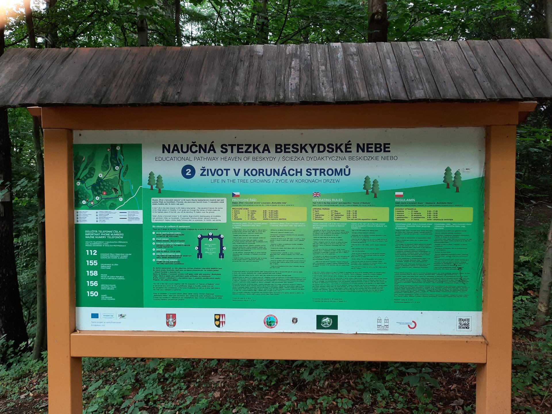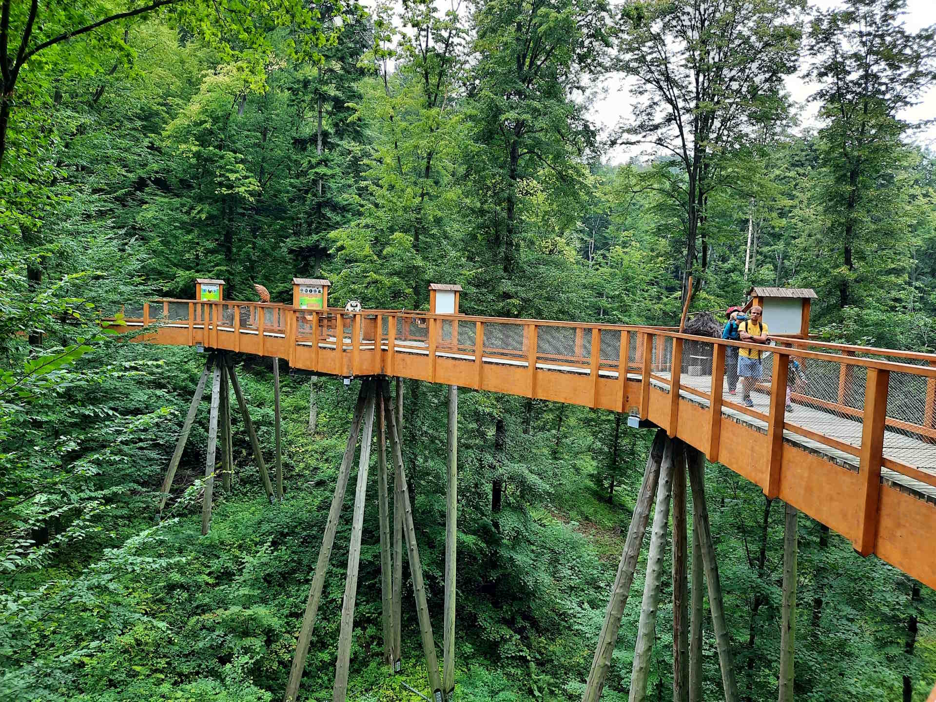 Jedna ze zastávek naučné stezky Beskydské nebe je dřevěný chodník v korunách stromů v areálu Horeček v Trojanovicích. Tato turistická atrakce "Život v korunách stromů" se zaměřuje na život ptáků a hmyzu v Beskydech.